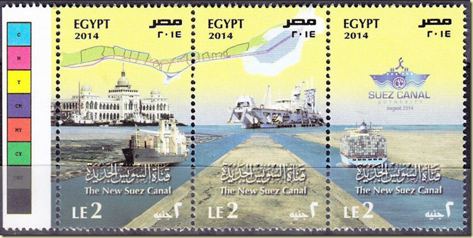 A set of three stamps were issued by Egypt Post to mark the announcement of the New Suez Canal project. but however, instead of Suez Canal, mistakenly the image of Panama Canal was used. This mistake was noted only after a day of issue and these were withdrawn and a new set of three stamps were issued again after few days.